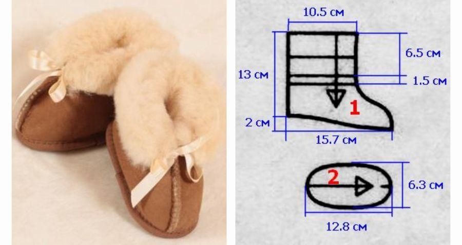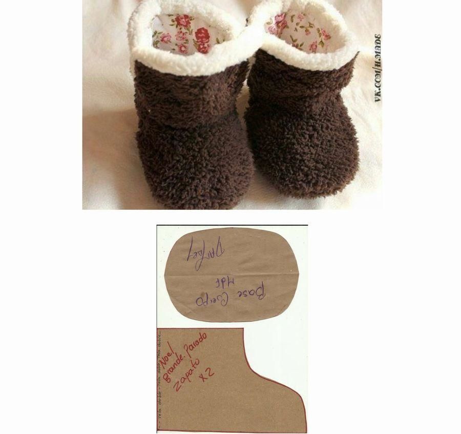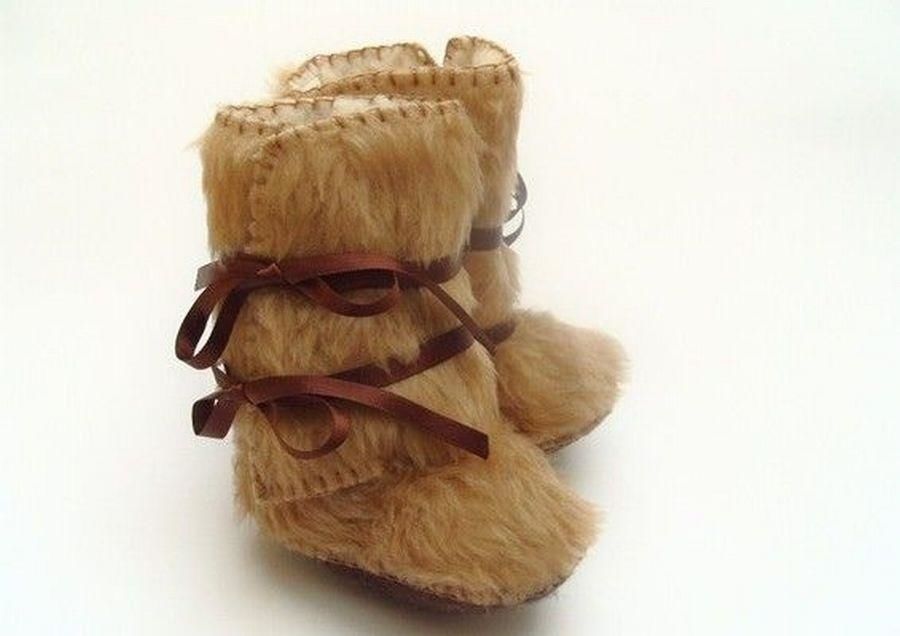 А вот вариант пинеток из искусственного меха для мальчика. Хорошо подойдет материал с длинным ворсом.