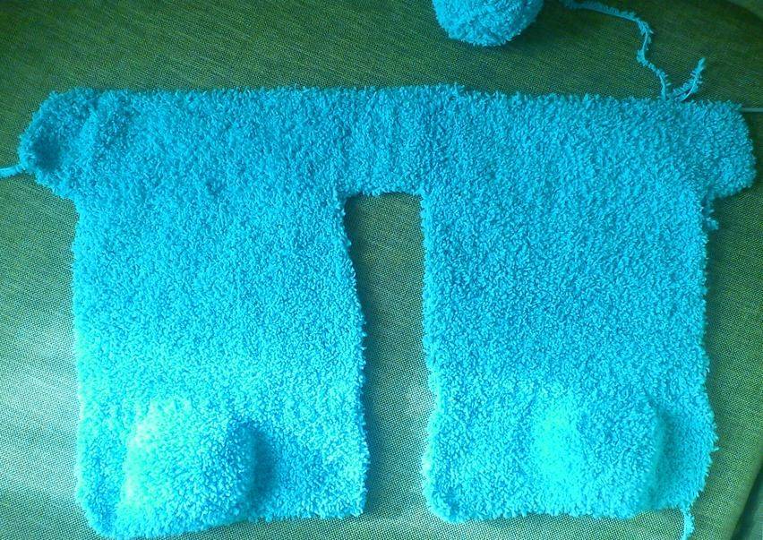 - Далее вязать спинку комбинезона лицевой гладью до высоты 50 см.