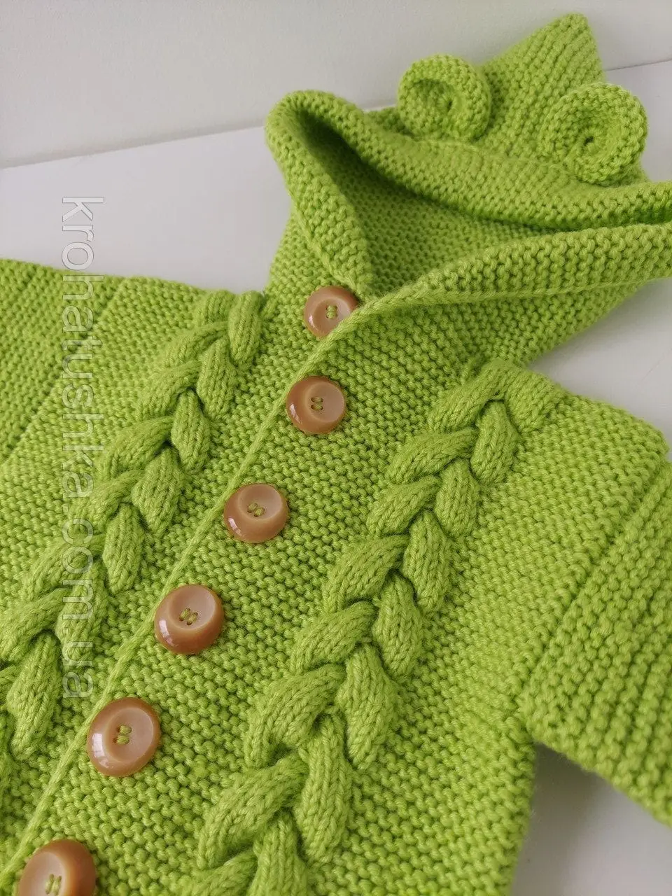 Декорирование изделия на ваш вкус и фантазию — например, сочетание нескольких цветов пряжи, различные вязаные аппликации ручной работы, дополнительные детали (ушки или помпоны на капюшон, карманы, фестоны, рюши, оборки и т.п.), а также украшения (банты, ленты, бисер, термоаппликации) выбирайте по желанию!