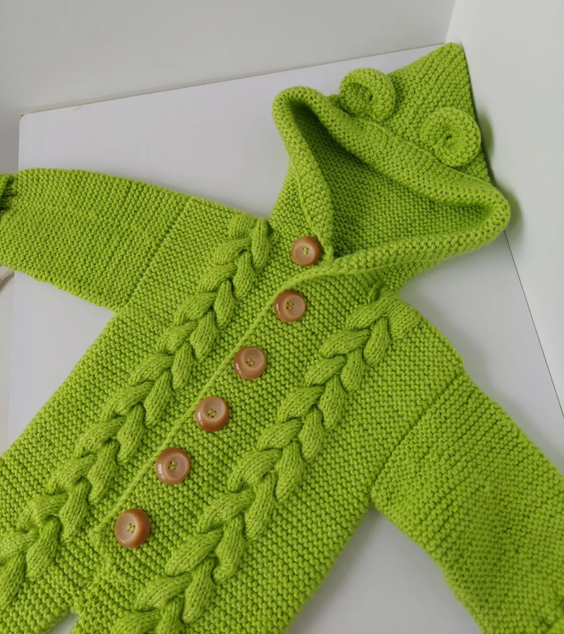 Сшить детали между собой, пришить пуговицы.Как связать кофту для малыша с регланом