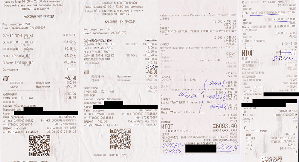 Мы с коллегой по родительскому комитету специально скидок и низких цен не ищем — покупаем там, где удобнее и ближе, но если узнаем о скидках, то не поленимся и съездим. То, что требуется часто — туалетную бумагу, пакеты для мусора и влажные салфетки для класса — я покупаю вместе с покупками для своей семьи в сетевом супермаркете. Покупки для класса стараюсь пробивать отдельным чеком, чтобы потом не высчитывать сумму для отчета из семейных покупок.