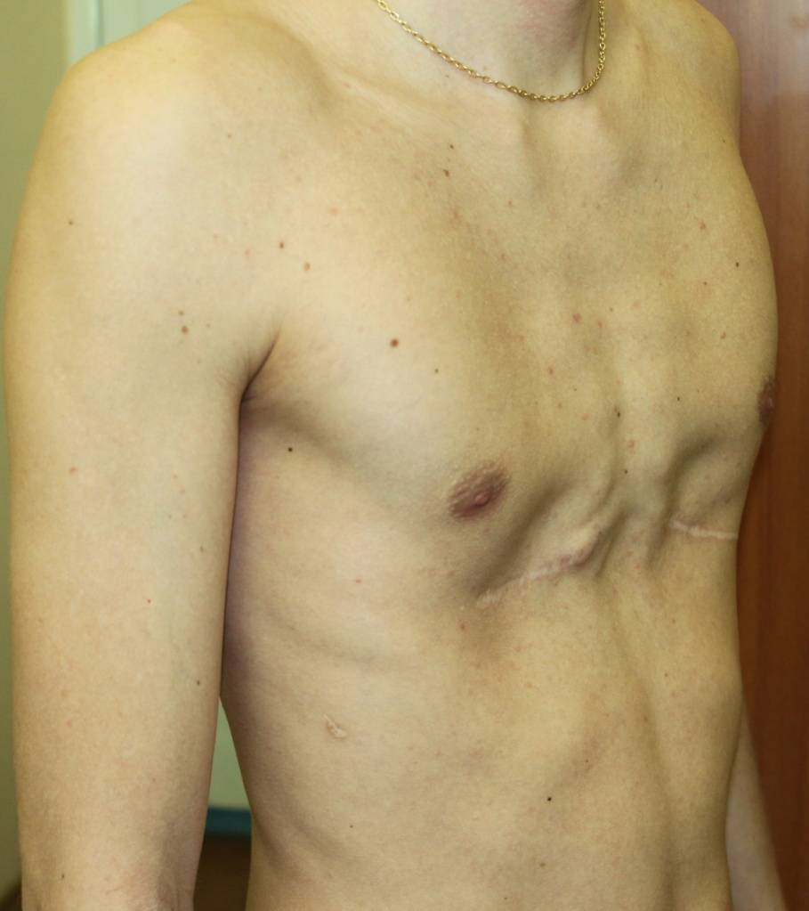 Помимо неровной грудной клетки и шрама через всю грудь у пациента оказалась абсолютно непригодная функционально грудная клетка. Помочь в этом случае крайне сложно.