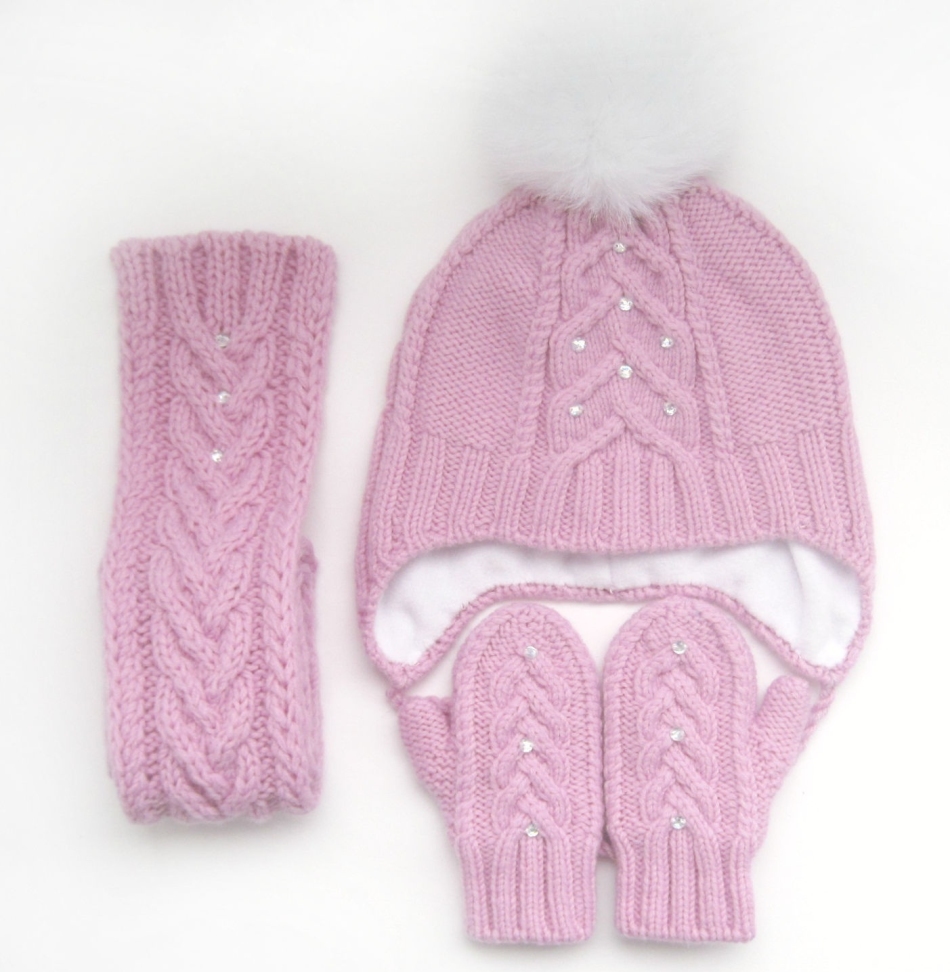 Комплект детский – шапка, шарф, варежки спицами: фото моделей