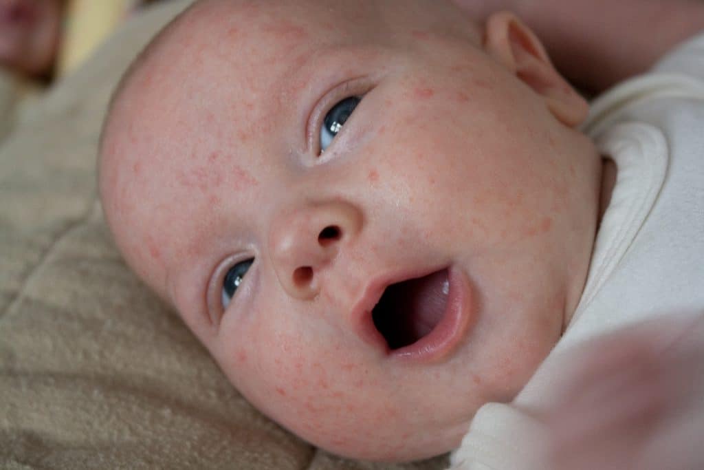 Красные шелушащиеся пятна на лице у грудничка: причины