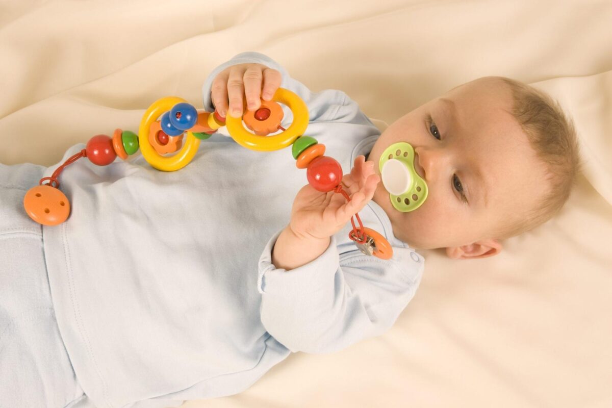 Погремушки и другие игрушки нужно выбирать того цвета, который малыш уже умеет видеть, с 2 месяцев — красные, с трех — красные и желтые, с полугода — всех цветов. Рядом с кроваткой в детской не должно быть зеркал и источников искусственного освещения.
