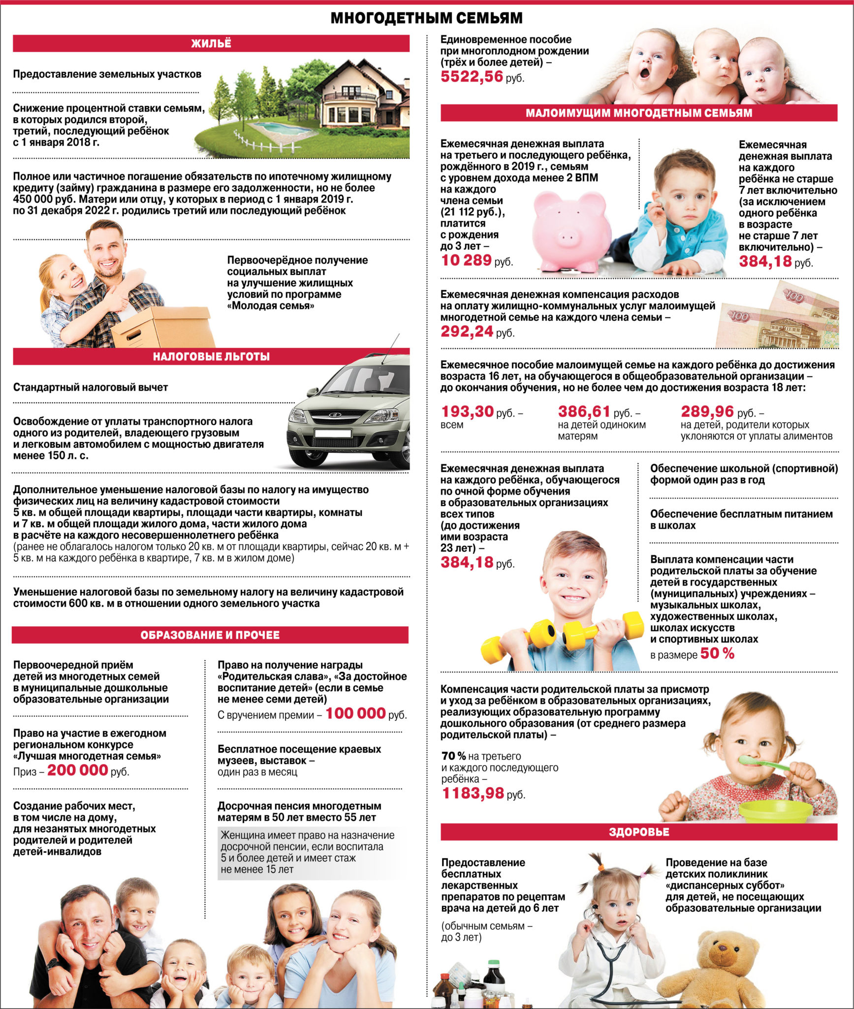 Так, в Ярославской области в счет пособия многодетным семьям на детей до 3 лет выдают 656 рублей ежемесячно. От 3 до 18 – 419 рублей.