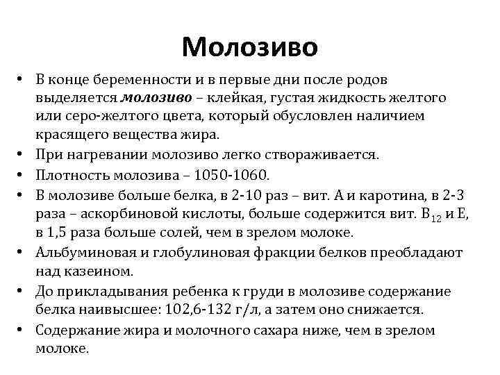 От обычного материнского молока молозиво отличается составом. В нём содержатся: